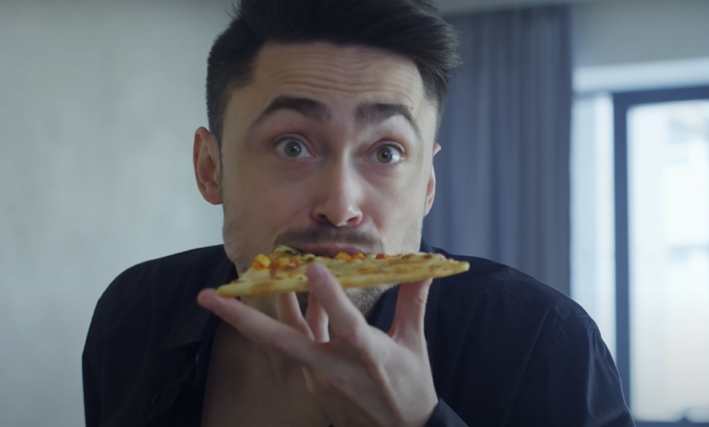 "Hast du die Pizza auf dem Weg gegessen? Warum ist der Karton so leicht? Erst kommst du hierher und störst mich! Und jetzt das?"