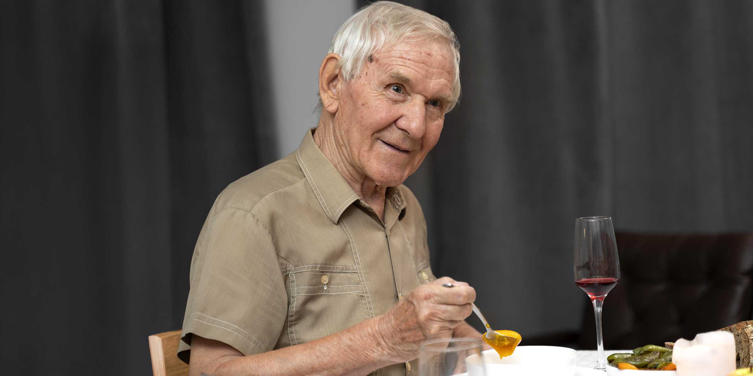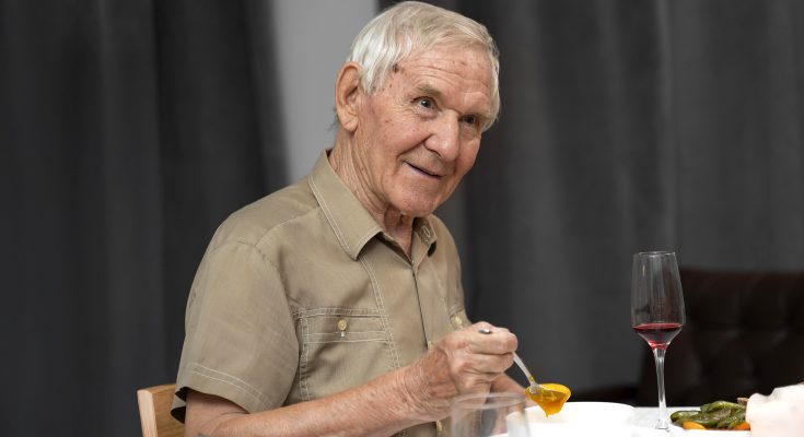 Er klopfte mit einer Gabel auf sein Weinglas und versuchte so, die Aufmerksamkeit aller zu bekommen.